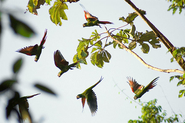 Un espectáculo de colores en la Collpa de Loros Imagínate estar rodeado de loros y guacamayos mientras el sol comienza a iluminar la selva. ¡Una explosión de color y sonido que te dejará sin palabras! Un día de exploración profunda Este día es para conectar con el bosque en su máximo esplendor. Caminamos por senderos ocultos, donde las bandadas mixtas nos sorprenden con aves como el Quetzal pavonino y el Trogón Curucui.