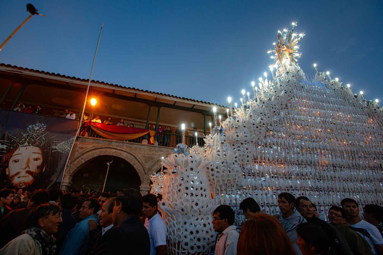 Asiste a la emotiva procesión del Domingo de Pascua en la Plaza Mayor, donde el ambiente festivo te envolverá con música y tradiciones. Su anda, cubierta por cenefas de cera, recorre la Plaza Mayor, mientras suenan las campanas de los templos, el estallido de cohetes y la música de las bandas que retumban en la plaza de armas.